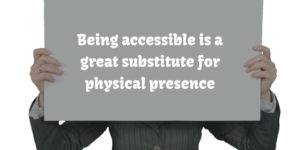 What might be even more important than initiating the communication is being accessible. The reason is pretty simple. People will take note of your accessibility if they are already thinking of you. Being accessible is a great substitute for physical presence.